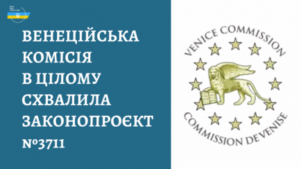Венеційська комісія в цілому схвально оцінила законопроєкт №3711, що був внесений до парламенту у червні 2020 року Президентом України як невідкладний.