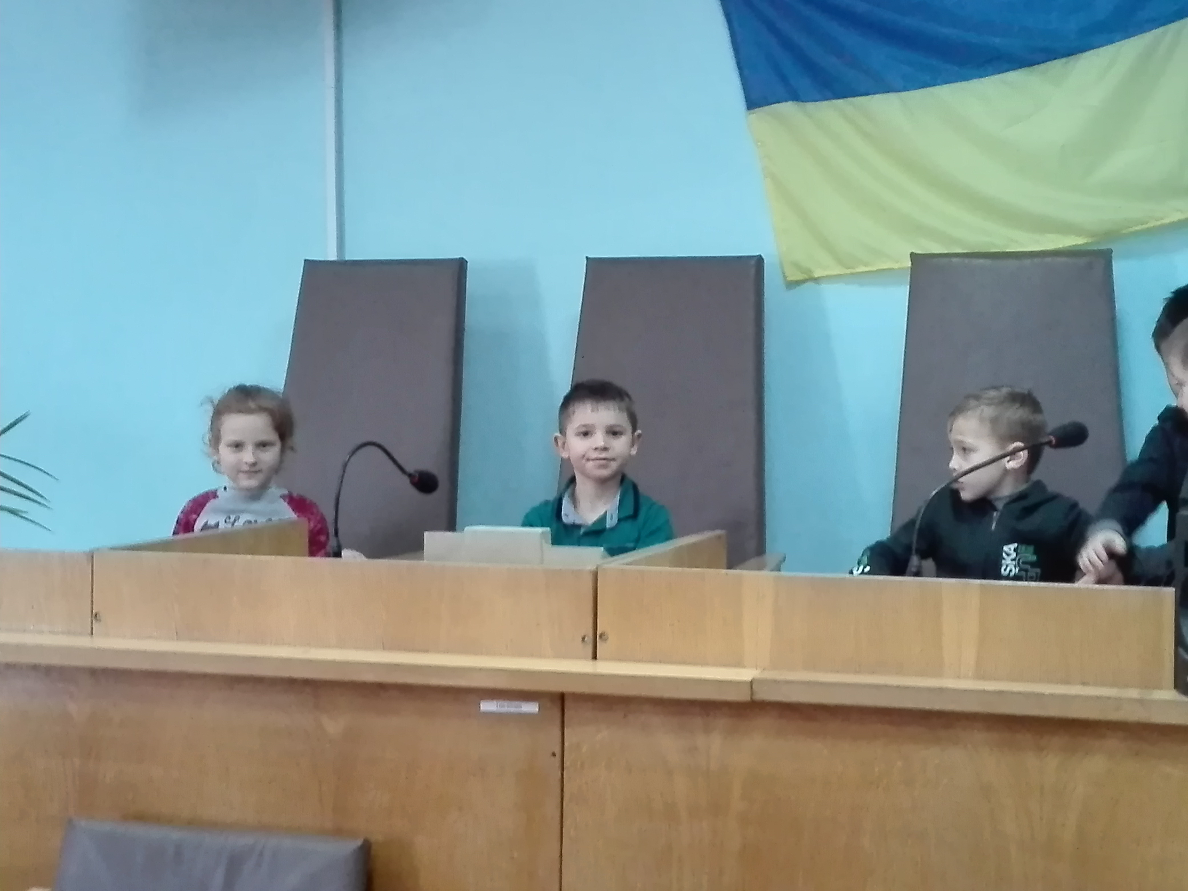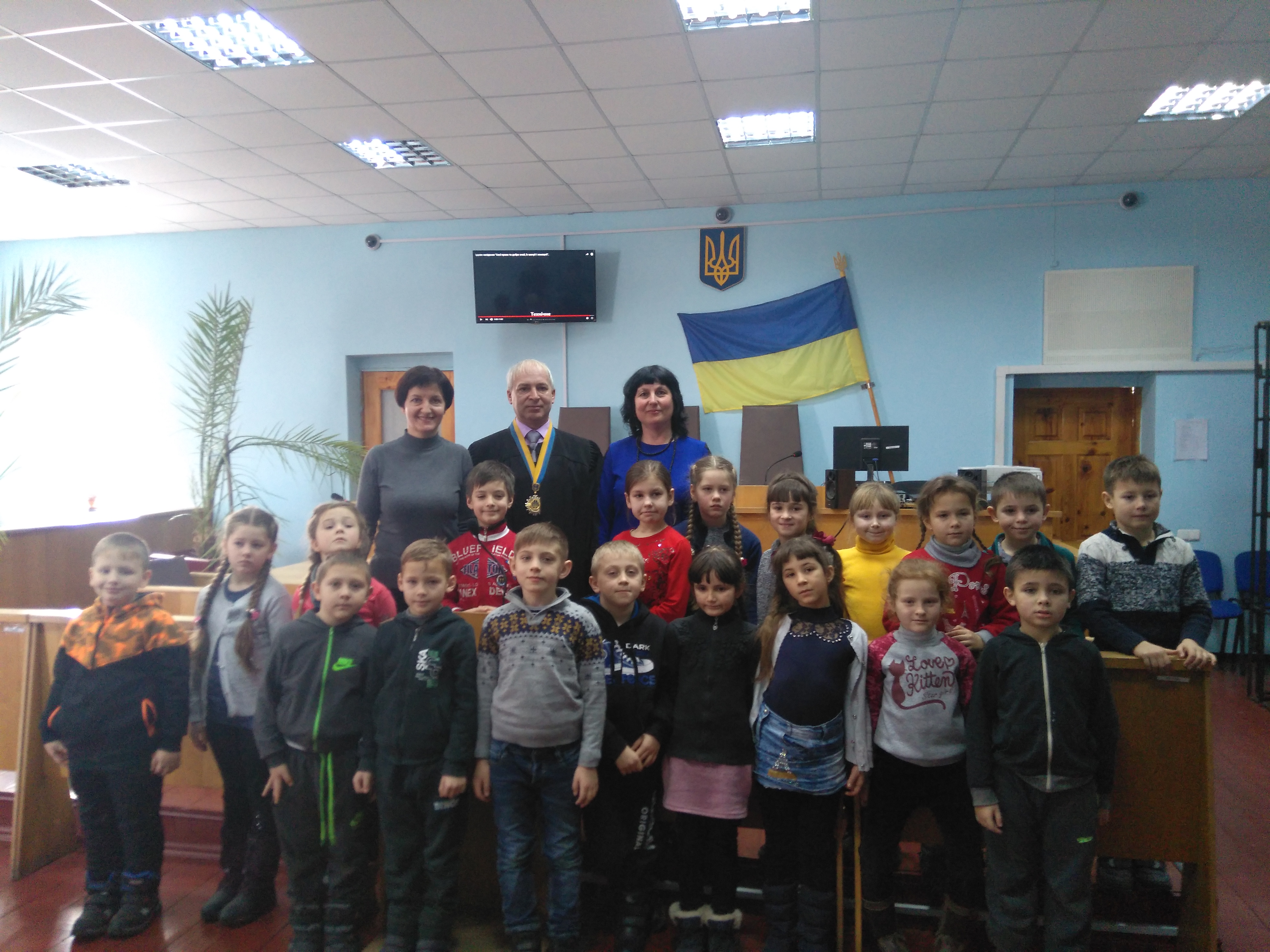 Потім хлопців та дівчат запросили до зали судових засідань, де розглядаються кримінальні справи. Діти з цікавістю розглядали, які місця займають судді, адвокати, прокурори, а також підозрюваний чи обвинувачений.