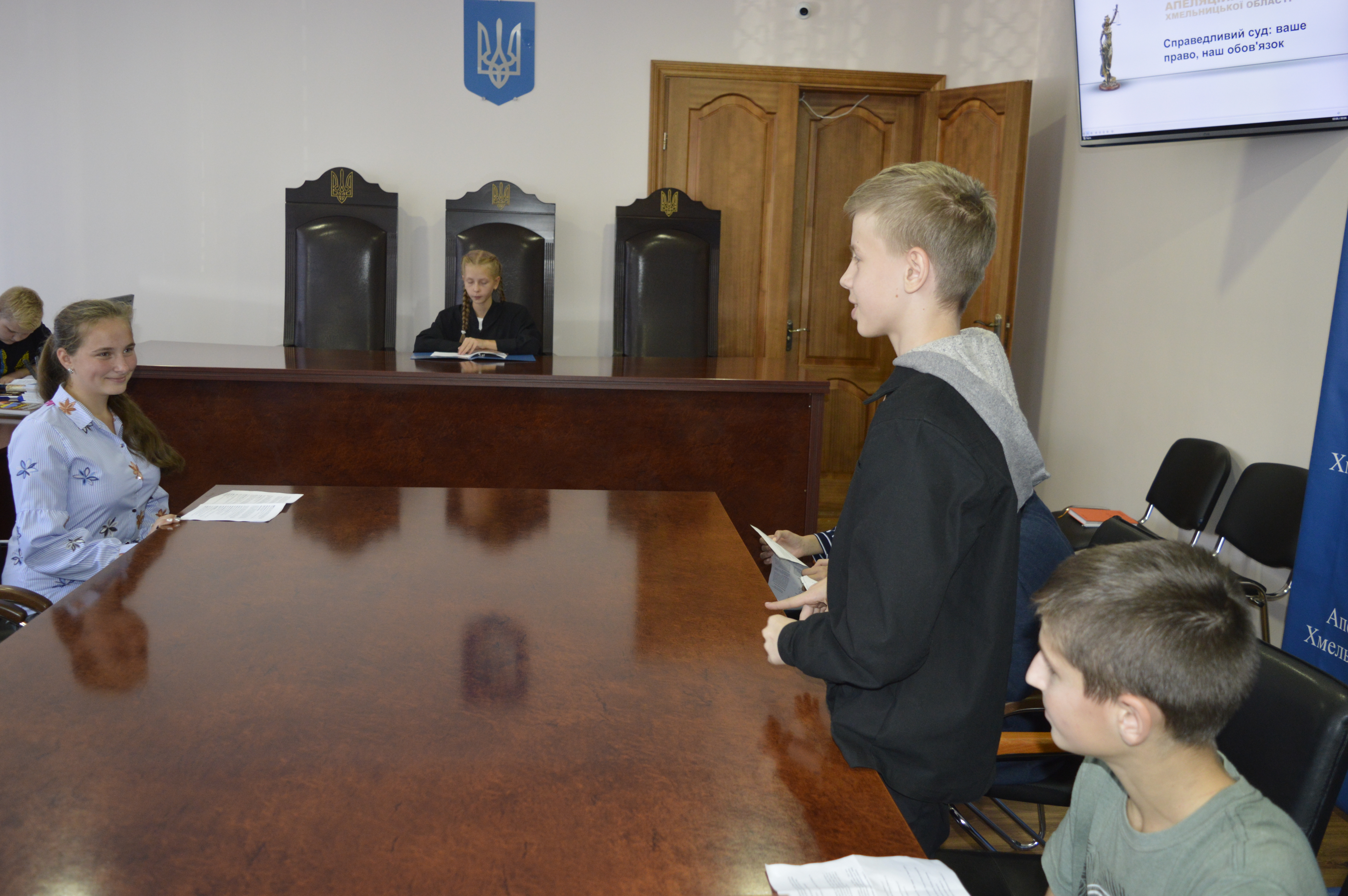 21 вересня 2018 року в Апеляційному суді Хмельницької області учні 8-Б класу СЗОШ №6 взяли участь у модельному судовому засіданні у кримінальній справі про крадіжку з проникненням. Школярі одразу вжились в ролі і процес був максимально наближений до реальності.