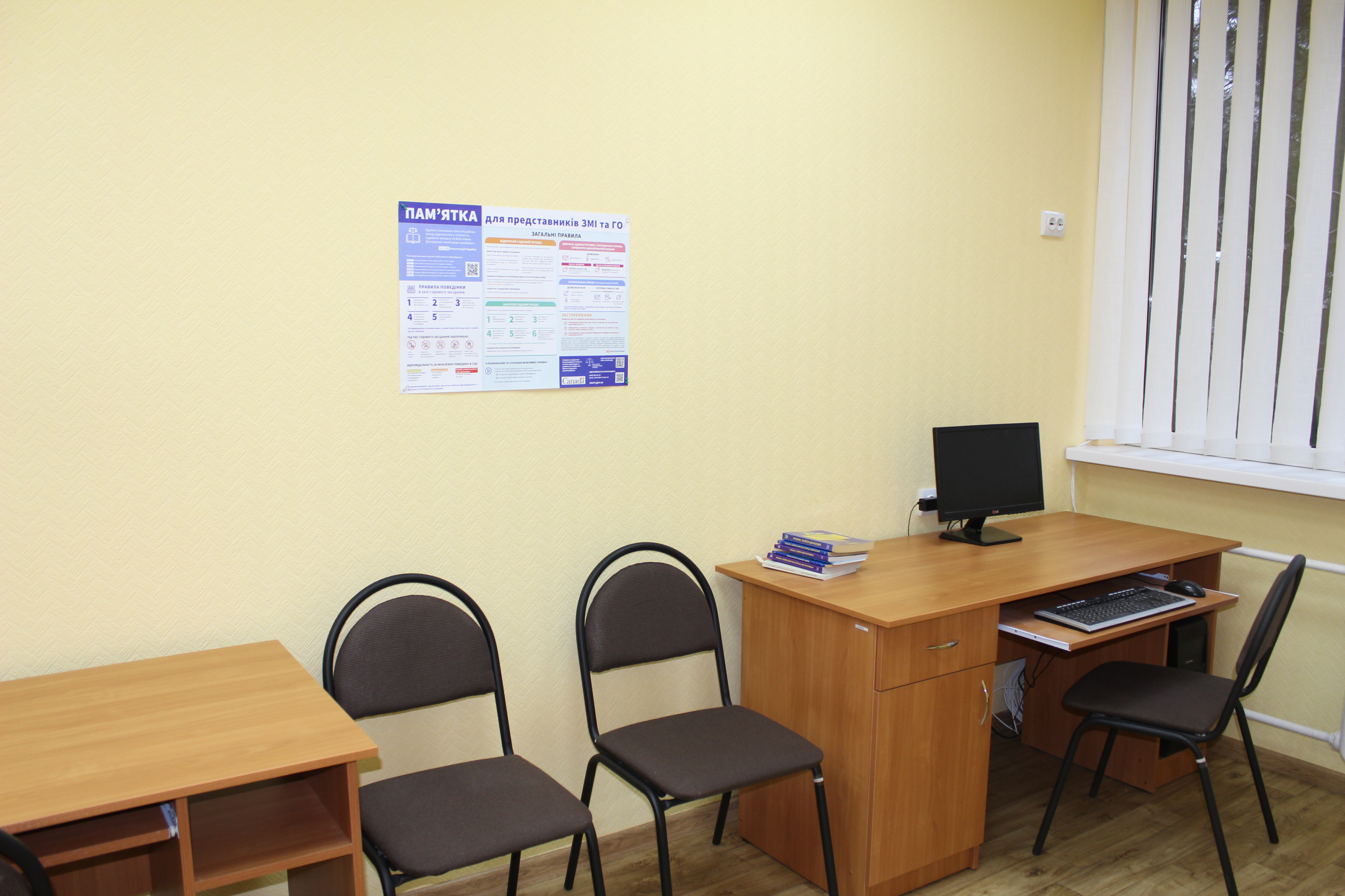 Вказане приміщення забезпечить комфортні умови для ознайомлення з матеріалами справ, надасть можливість своєчасно та якісно готуватися до судових засідань. Кімнату обладнано комп'ютером з вільним доступом до інтернету, що дасть змогу швидко знайти необхідні нормативно-правові акти, судові рішення в Єдиному державному реєстрі судових рішень, скористатися електронною поштою та інше.