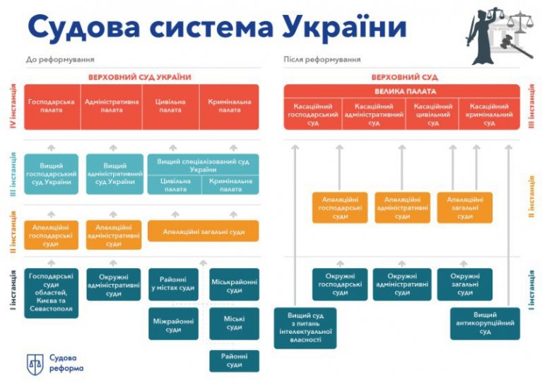 Перехід до триланкової системи судів та перезапуск Верховного Суду. Донедавна в Україні існувало 4 ланки судової системи. Були суди першої (місцеві) і другої інстанції (апеляційні), які розглядали справи по суті з вивченням обставин і доказів. В разі необхідності судове рішення переглядали в одному з 3 вищих спеціалізованих судів: господарському, адміністративному та з розгляду цивільних і кримінальних справ. Також була четверта інстанція, Верховний суд України, до якого звертались увиключних обставинах. Але такий підхід не виправдав себе.
