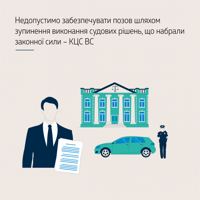 Колегія суддів погоджується з висновком апеляційного суду про те, що заборона приватному виконавцеві, керівникові батальйону поліції та працівникам підприємства, які здійснюють охорону вилученого ТЗ на спецмайданчику, вчиняти будь-які дії щодо спірного автомобіля призведе до зупинення виконання виконавчого напису нотаріуса, що є недопустимим.