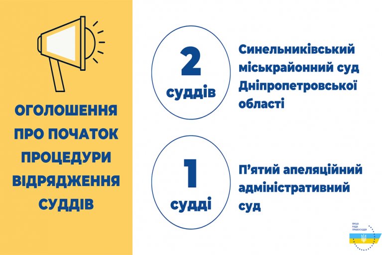 Вища рада правосуддя відповідно до рішень від 19 листопада 2020 року оголошує про початок процедури відрядження суддів до іншого суду того самого рівня і спеціалізації для здійснення правосуддя, а саме до: