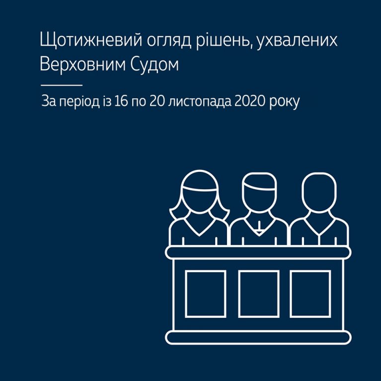 Щотижневий огляд рішень, ухвалених Верховним Судом (за період із 16 по 20 листопада 2020 року)