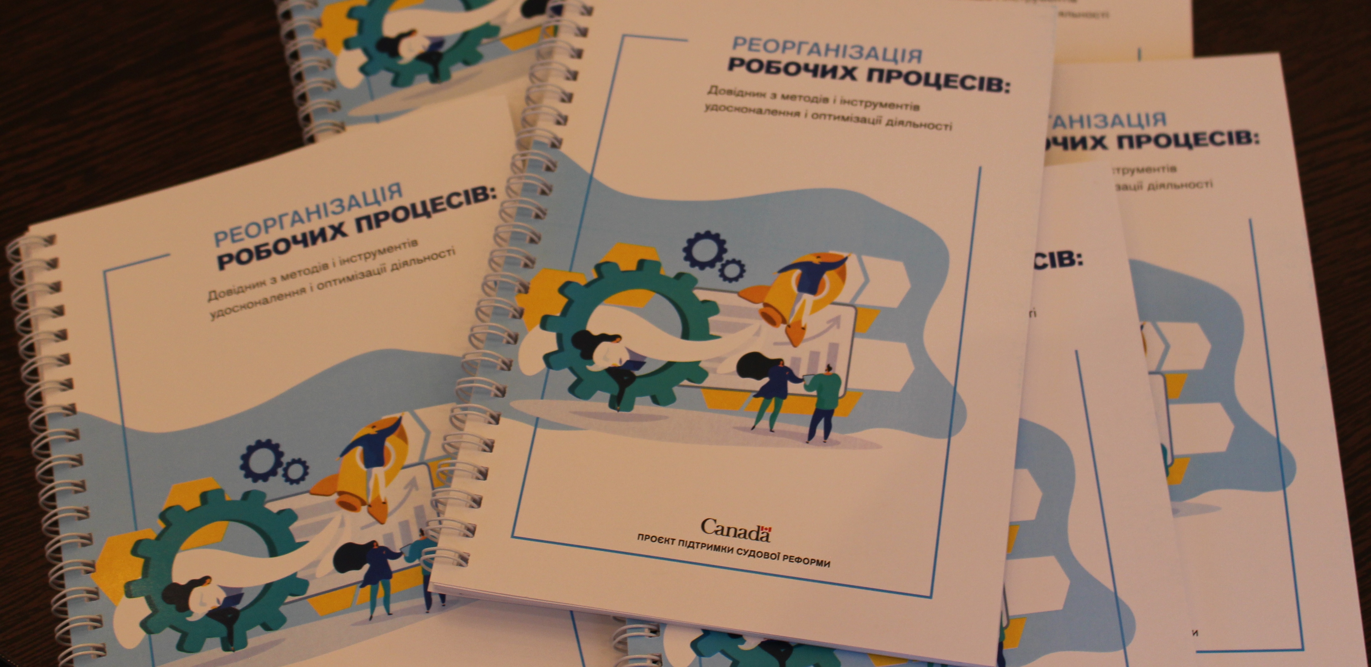 27 січня 2021 року за участі представників Державної судової адміністрації України, її територіальних управлінь та канадських експертів з питань судового адміністрування у режимі відеоконференції відбулася презентація посібника "Реорганізація робочих процесів: довідник з методів та інструментів удосконалення і оптимізації діяльності". Посібник підготовлено в рамках співпраці ДСА України з українсько-канадським Проектом підтримки судової реформи на основі заходів зі спрощення робочих процесів.