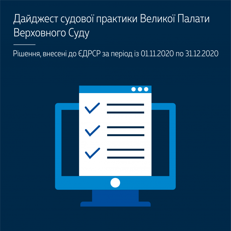 Дайджест охоплює здебільшого нові правові позиції Великої Палати Верховного Суду, відображені в рішеннях, оприлюднених у листопаді — грудні 2020 року.