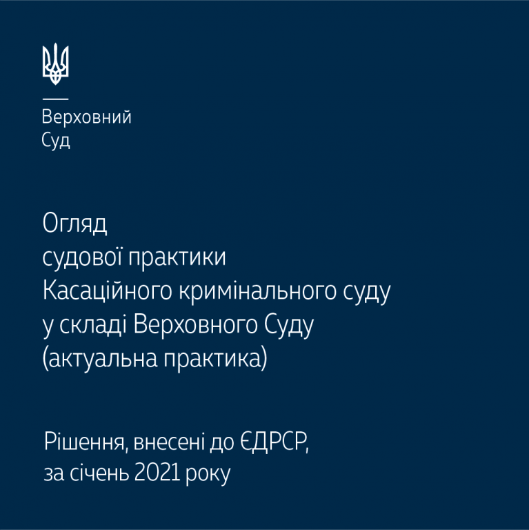 В огляді зібрано найбільш цікаві правові позиції з проблем кримінального та кримінального процесуального права, що містяться у постановах, ухвалених Касаційним кримінальним судом у січні 2021 року.