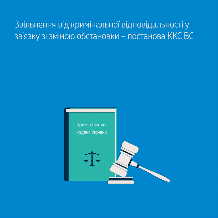 Перевіривши матеріали кримінального провадження, касаційний суд установив, що висновки про можливість звільнення особи від кримінальної відповідальності за вчинення кримінального правопорушення у зв’язку зі зміною обстановки суд першої інстанції зробив на підставі заявленого захисником обвинуваченої – адвокатом – відповідного клопотання з урахуванням позицій учасників провадження та з дослідженням даних про особу обвинуваченої, зокрема того, що його підзахисна є молодою особою, позитивно характеризується, уперше притягується до кримінальної відповідальності, повністю визнала вину, щиро розкаялася та активно сприяла розкриттю злочину.