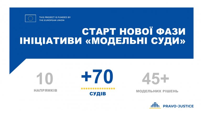 Проєкт EU Project «Pravo-Justice» на свої сторінці у Facebook повідомляє, що за результатами добору для реалізації нової фази Ініціативи «Модельні суди» до неї приєднаються 70 учасників з усієї України.