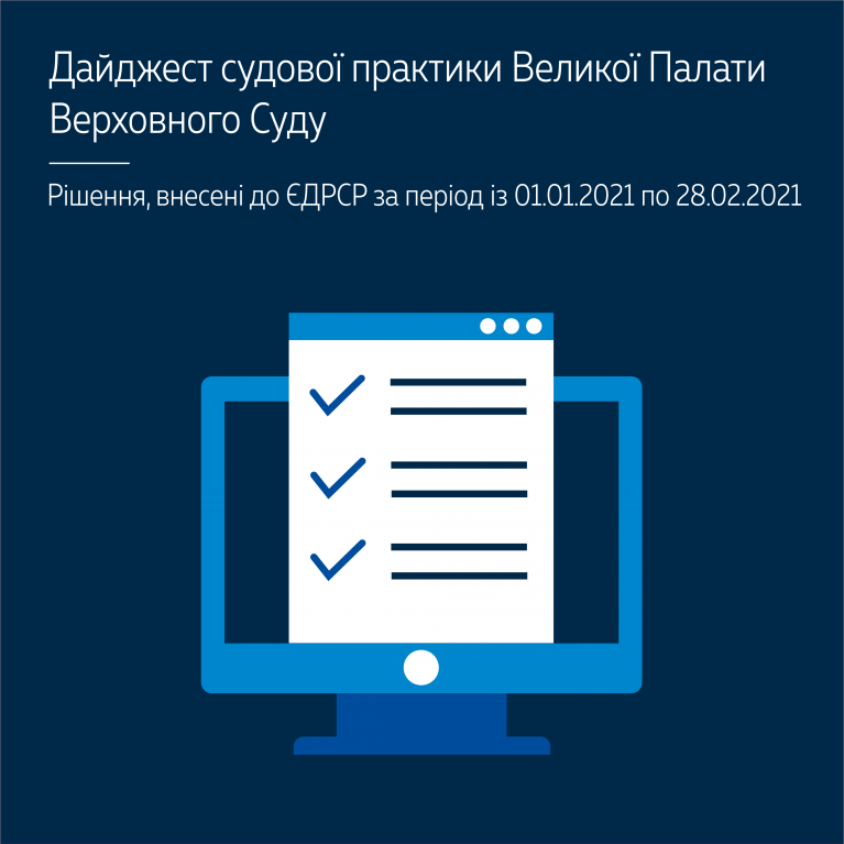 Дайджест охоплює нові правові позиції Великої Палати Верховного Суду, відображені в рішеннях, оприлюднених у січні – лютому 2021 року.