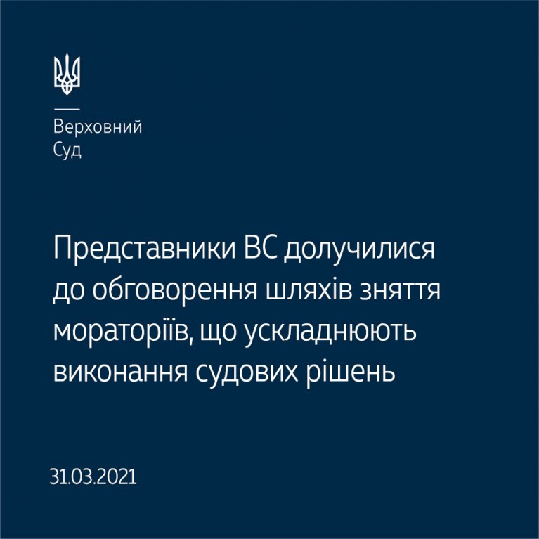 31 березня 2021 року експертна група з питань суміжних з правосуддям правових інститутів Директорату правосуддя та кримінальної юстиції Міністерства юстиції України в онлайн-форматі провела консультації із заінтересованими сторонами на виконання Плану заходів щодо реалізації Національної стратегії розв'язання проблеми невиконання рішень судів боржниками.