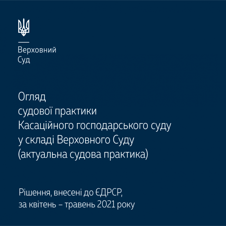 Пропунуємо вашій увазі огляд актуальної практики Касаційного господарського суду у складі Верховного Суду, який охоплює правові позиції, викладені в рішеннях, що внесені до ЄДРСР, за квітень – травень 2021 року.