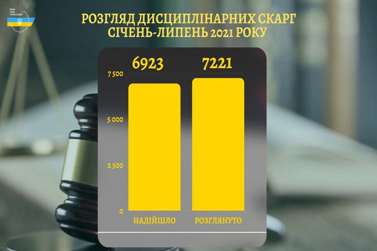 До вимушеного зупинення розгляду дисциплінарних справ Дисциплінарні палати та члени Вищої ради правосуддя протягом перших семи місяців 2021 року повністю завершили розгляд 7221 дисциплінарної скарги включно з тими, що надійшли у попередні роки.