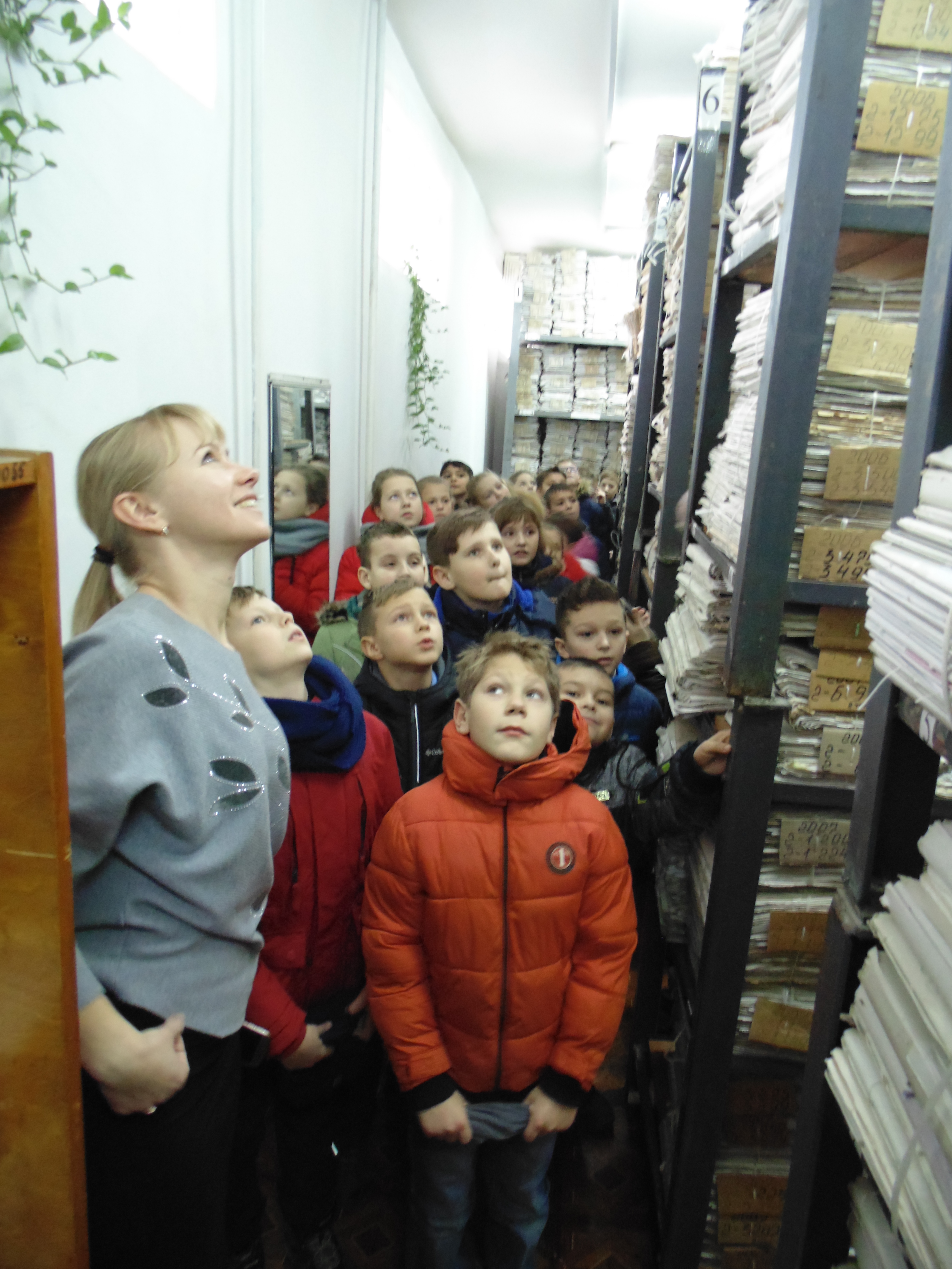 Зустріла учнів керівник апарату суду Алла Шевченко та провела їх до архіву суду. Тут учні подивилися як зберігаються матеріали та порахували, на прикладі найстарішої справи , скільки років тому створений Зарічний районний суд м. Суми.