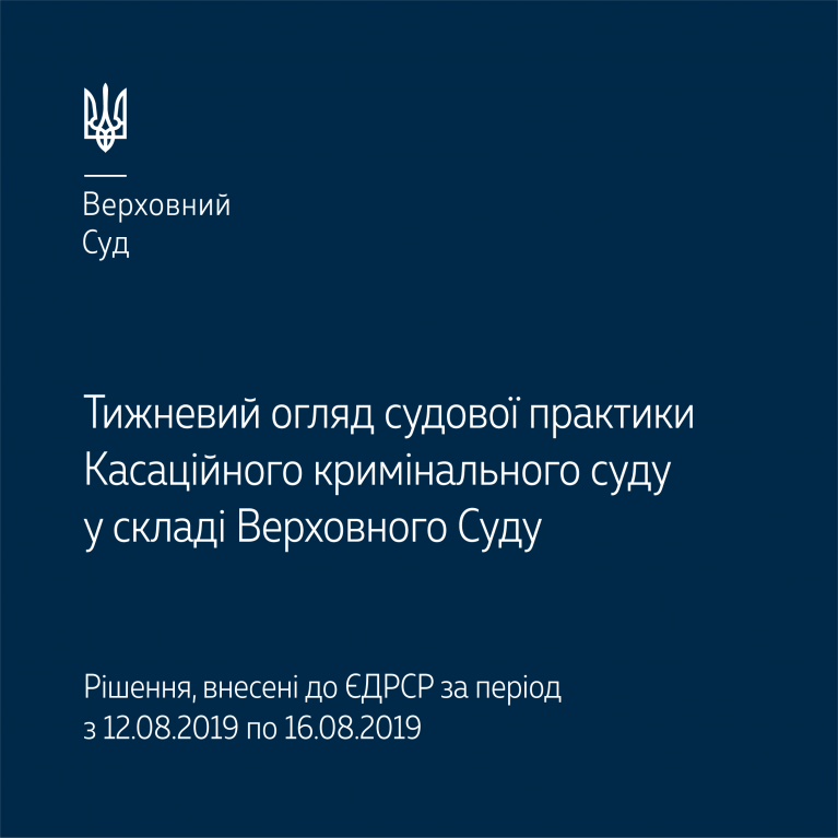 Огляд містить ряд актуальних позицій Касаційного кримінального суду, оприлюднених з 12 по 16 серпня 2019 року.