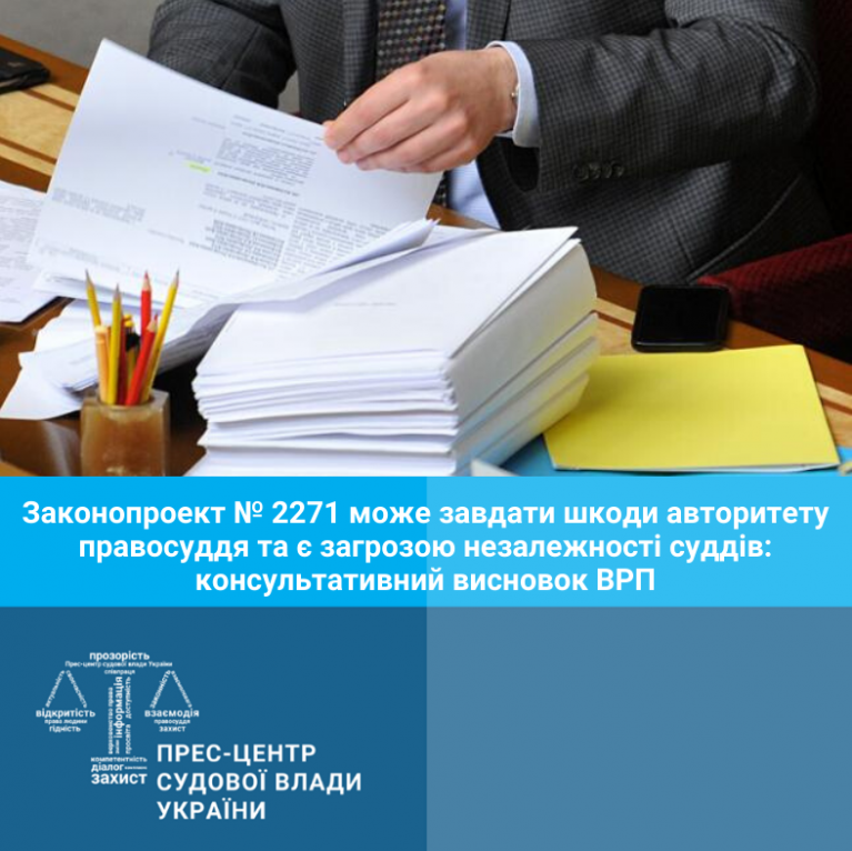 Вища рада правосуддя вважає, що законопроект № 2271 може завдати шкоди авторитету правосуддя та є загрозою незалежності суддів.