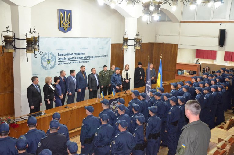 Урочисту присягу у суді сьогодні склали 84 службовці Служби судової охорони, з яких 12 будуть нести службу у Дніпровському апеляційному суді.