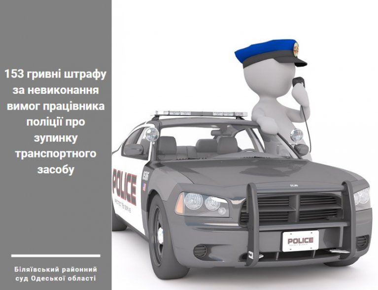 Довідково: 25 листопада 2019 року о 10:13 в смт. Хлібодарське, Біляївського району, Одеської області на автошляху М-15, громадянин Б., керуючи автомобілем марки «Chery Eastar» не виконав вимог працівника поліції про зупинку транспортного засобу, водій продовжив рух, чим порушив вимоги п. 2.4 Правил дорожнього руху.
