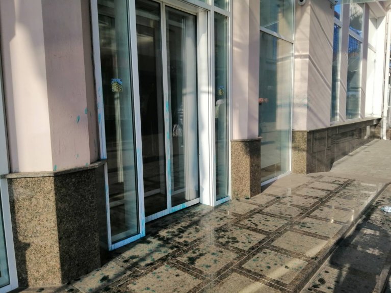 Внаслідок цього було пошкоджено вхідні двері установи, стіни будівлі та сходи.