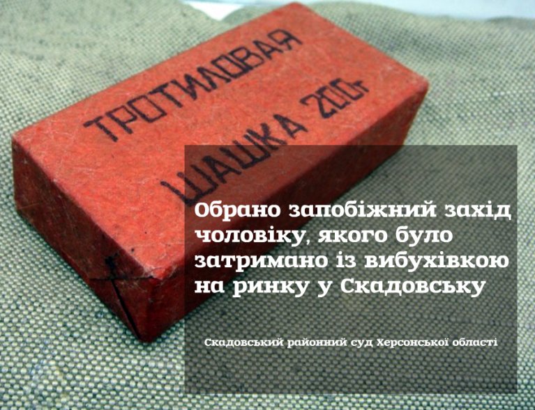 Обрано запобіжний захід чоловіку, якого було затримано із вибухівкою на ринку у Скадовську