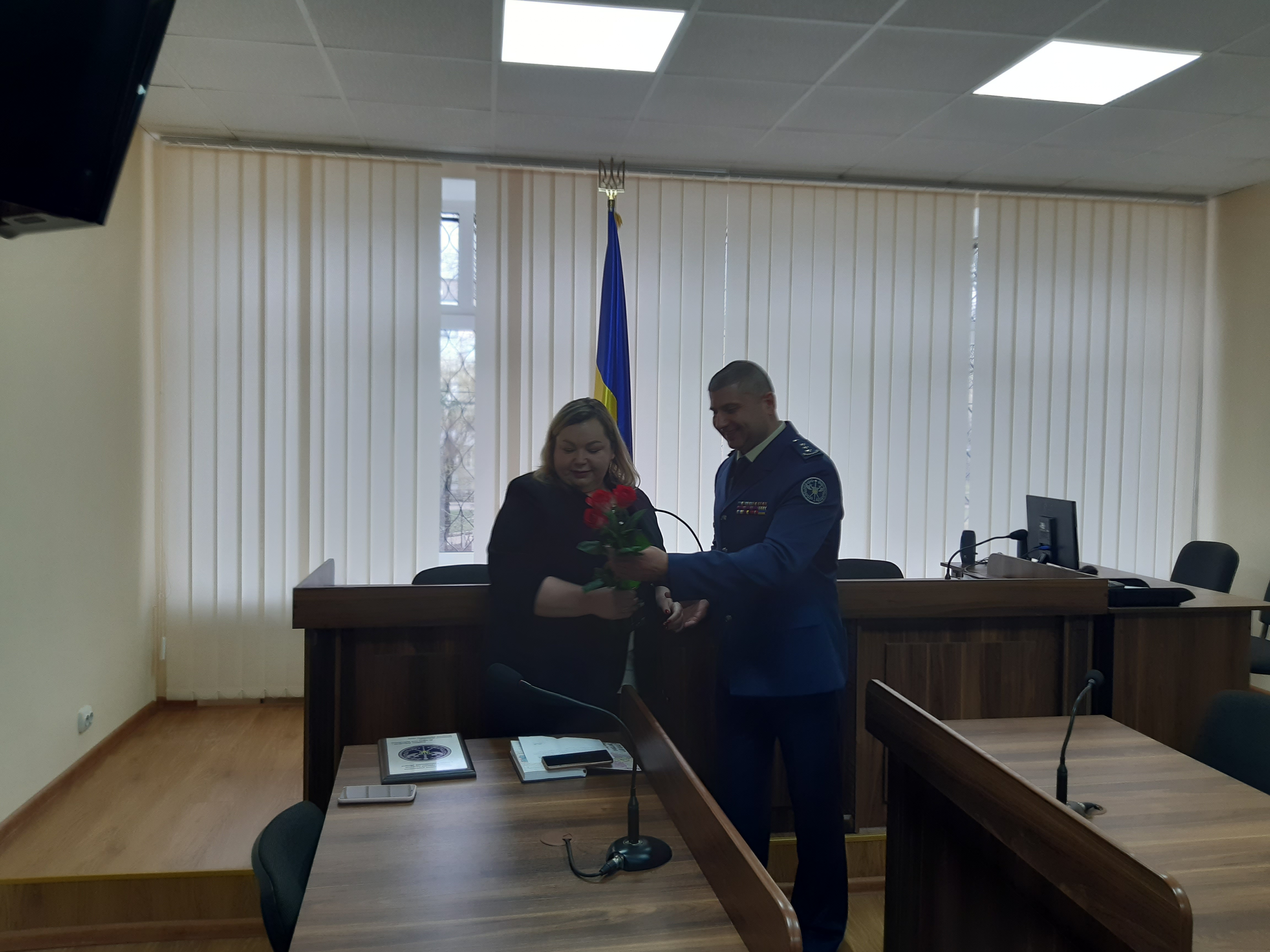 Приємною несподіванкою для жіночого колективу суду було вітання та дарування троянд службовцями судової охорони.